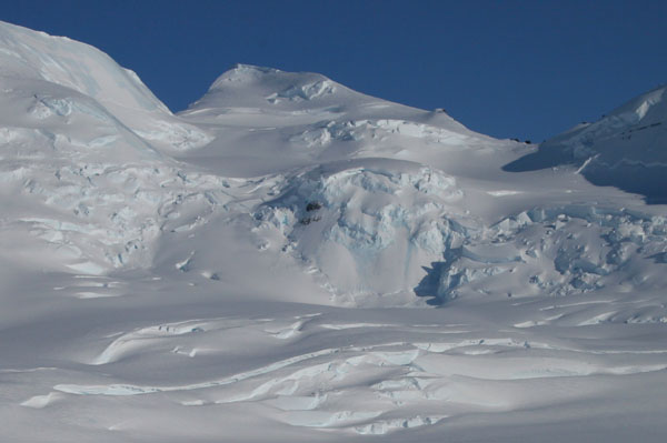 Deception Dome, 3526m Watkins Mountains, N68:51.0 W29:37.5 Seventh-highest in Greenland First Ascent 1988: J. Lowther (unconfirmed) Second Ascent 2004: E. Nordahl Our ascent: 01. and 02.05.2008 (3rd ascent in history) Route: 2 crossings (PD+) on the way to and from PEV |