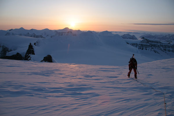 ![]() 23:00 on PEV summit: Gunnbjørn Fjeld and midnight sun |