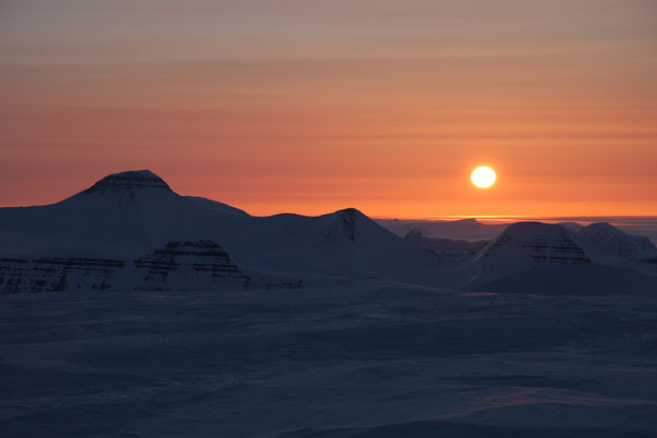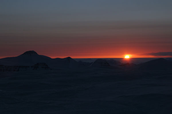 ![]() 23:30 on PEV summit: the sun scratches the horizon, daylight remains |